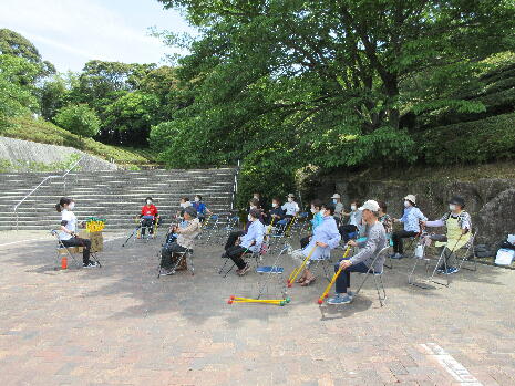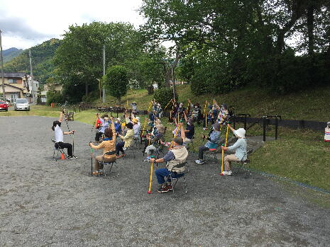 飯田地区社協の皆様と飯田地区自治会の皆様とも協議をさせて頂き、3密にならず感染予防を徹底したうえで公園を使用させていただき、30分と短い時間ではありますが、ポールを使った体操を行ないました。5月は11会場で延べ212名の方が参加、6月は11会場で延べ182名の方が参加されました。
