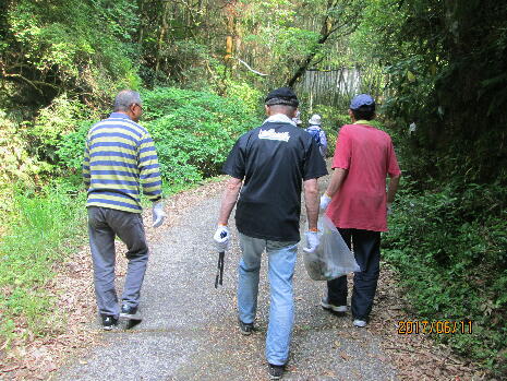 担当するエリアに分かれての作業で、あすなろの家班は小壮の滝方面のゴミ拾いをしました。地域住民の方と山道を共に歩き、時々落ちている空き缶やお菓子の袋等のゴミを拾いました。山道はとても涼しく、心地よい空気にとても癒され、滝までの2〜3kmの距離もあっという間の時間でした。いつもお世話になっている地域の皆様、山原の土地に少しだけ恩返しができたかな?