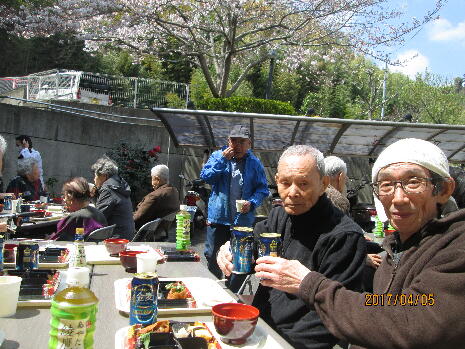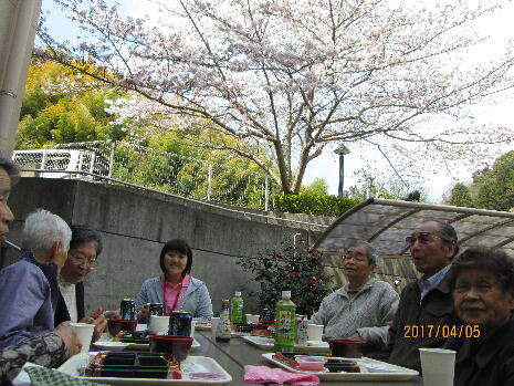 ケアハウスの皆様でお花見喫茶を行ないました。ご馳走とともに、昼間からのビールの味は格別…!?