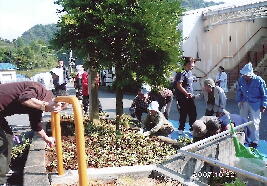 特養の中庭やデイサービスの庭をきれいに、また、支援センター前には今年も「緑のカーテン」を育ててくださっています。今年はゴーヤに加え、パッションフルーツが仲間入り! |