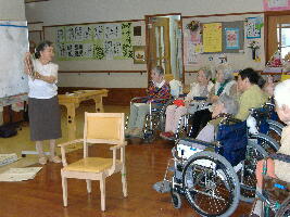 | 隔週火曜日に来てくださいます。傾聴ボランティア講習を受けた数少ないボランティアさんです。入居者との会話の時間をなかなか作れない職員に代わって入居者のお話を聞いてくださいます。 |